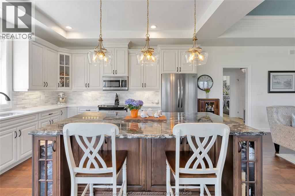 Experience luxury island living on beautiful Boblo Island in this stunning Craftsman-style ranch. Boasting just over 2,000 sq ft, this 3+1 bed, 4 bath home offers elegant finishes, exquisite décor, and a fully finished basement. Nestled on a spacious corner lot with serene water views of the Amherstburg shipping channel, it’s perfect for families or couples seeking peace, privacy, and charm. Impeccably maintained inside and out, this move-in ready home invites you to enjoy comfort, style, and the unique lifestyle only island living can offer. A rare gem you won’t want to miss! Ferry runs 24/7 all year long, 4 minutes from mainland. V/L located on East side (attached) available for purchase, MLS® 25022896. (id:4555)